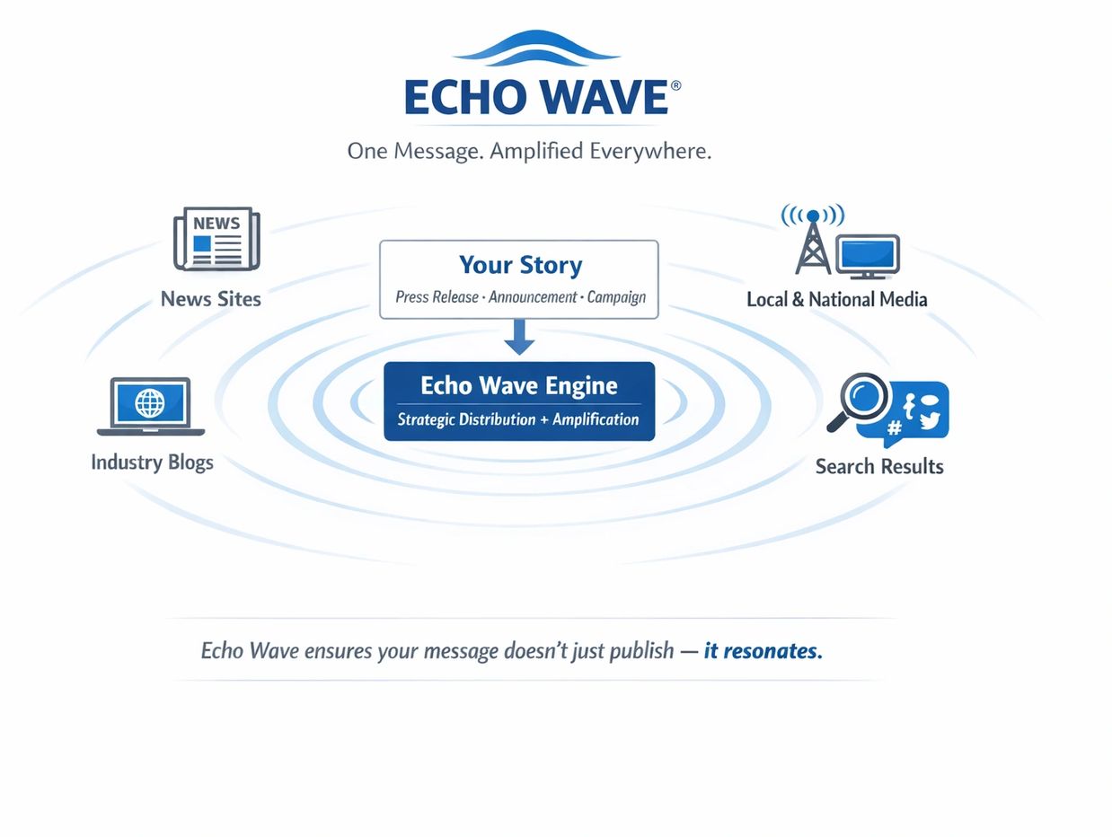 The EchoWave Media Expansion package is designed to elevate your visibility through credible, third-party editorial coverage paired with powerful nationwide amplification. This solution goes far beyond a traditional press release by positioning your story as independent news—boosting trust, reach, and long-term impact.